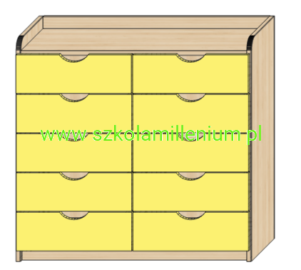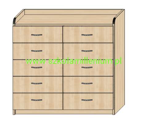 Szafka posiada dziesięć szuflad na prowadnicach kulowych.