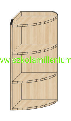 Szafka narożna z trzema otwartymi półkami i regulacją wysokości.