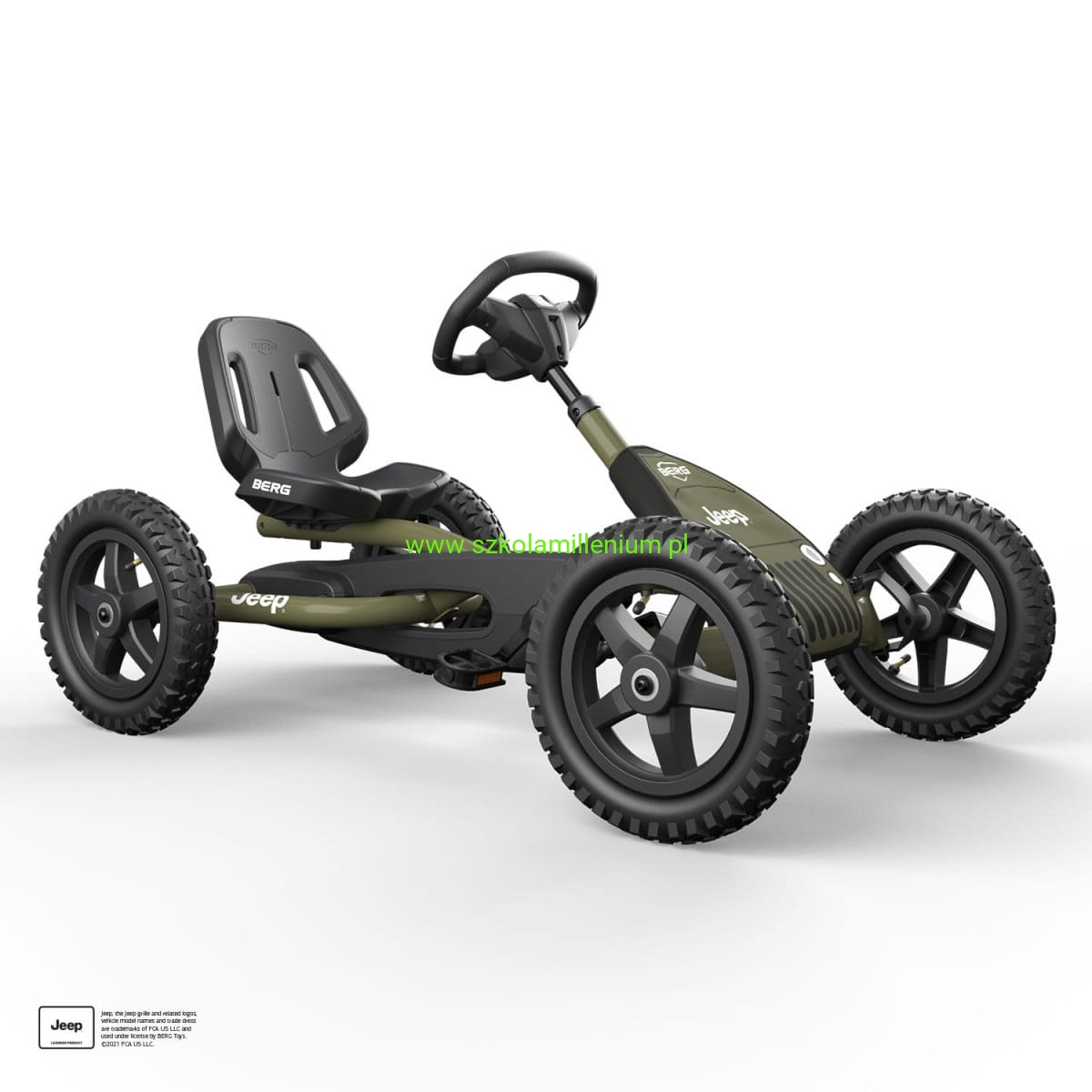 Bezpieczny i lekki w swej konstrukcji gokart Jeep Junior, który swoją stylistyką trochę nawiązuje do stylistyki retro, to po prostu piękny sprzęt - zabawka zarówno dla chłopców, jak też dla dziewczynek. Gokart sprawnie prowadzi się w terenie, jest prosty i łatwy w obsłudze, posiada regulowany fotel oraz kierownicę, dzięki czemu łatwo jest ich wysokość dostosować do wzrostu dziecka. Rozwija u dzieci umiejętność poruszania się w terenie, koordynację wzrokowo-ruchową i szybkość reagowania, poprawia koncentrację uwagi. Zabawa na gokarcie to dynamicznie spędzony czas, a przecież to właśnie to uwielbiają dzieci.