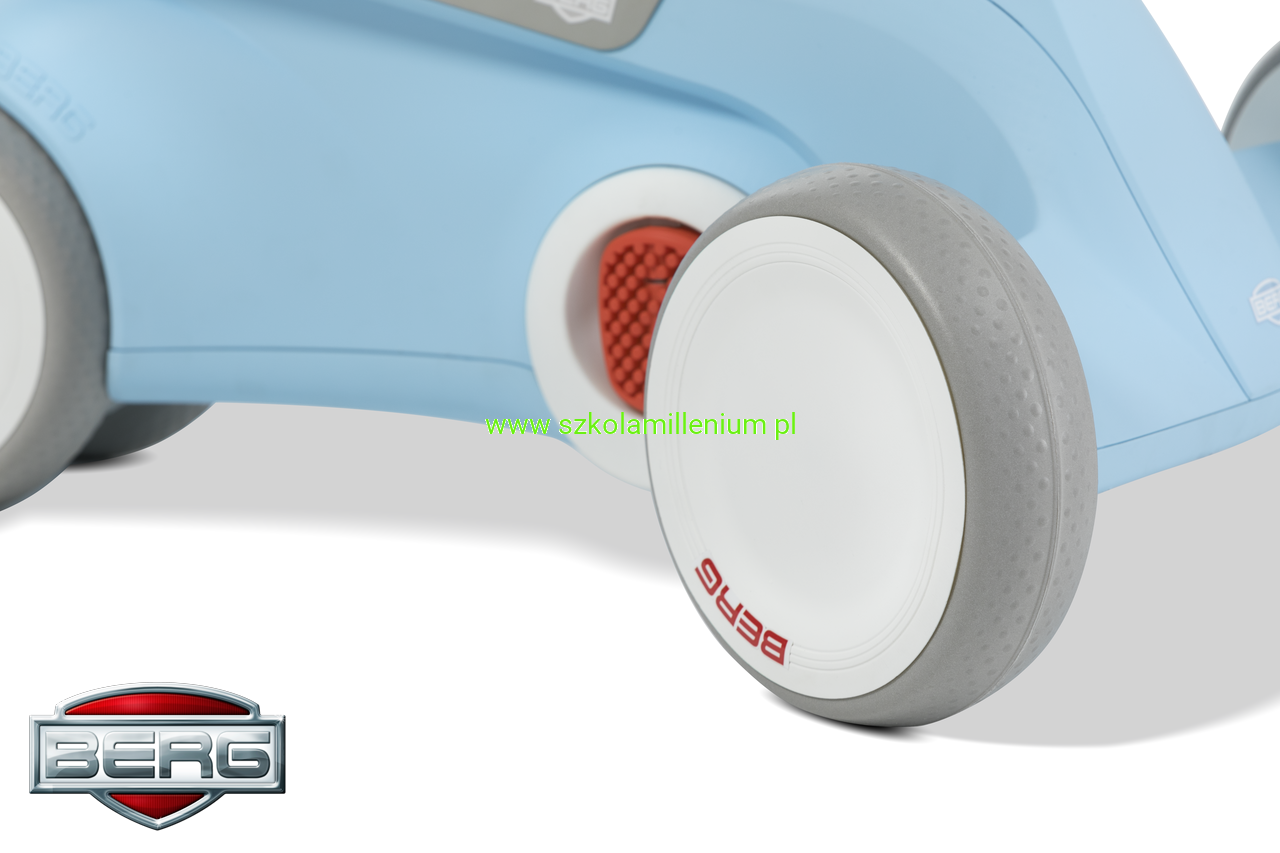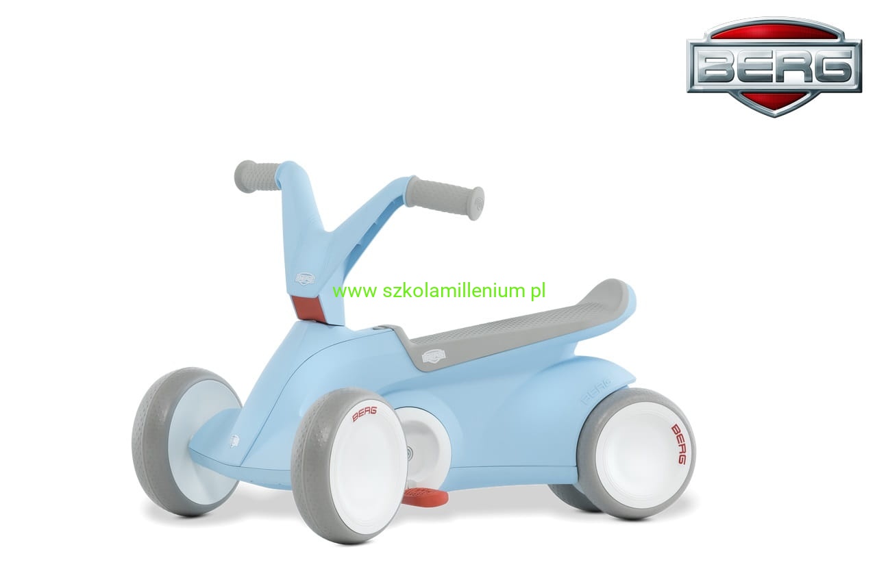 Pojazd firmy BERG przeznaczony jest dla najmłodszych użytkowników, a dzięki unikalnym rozwiązaniom dostarczy dużo radości na długi czas. Na początku może służyć jako jeździk, a młody kierowca odpychając się od ziemi nabierze pewności siebie i nauczy równowagi. Gdy podrośnie wystarczy rozłożyć pedały, aby pojazd służył za rowerek. Siedzenie posiada antypoślizgową powierzchnię i jest wyprofilowane w taki sposób, by dziecko przyjmowało odpowiednią pozycję podczas użytkowania. Dzięki umieszczeniu pedałów w ramie, zamiast w przednim kole, nasz maluch będzie posiadał pełną kontrolę nad pojazdem nawet podczas pokonywania zakrętów. Pojazd posiada łącznie cztery koła ze specjalnej pianki, przez co jest bardzo stabilny, całość wykonana jest z bardzo mocnego tworzywa.