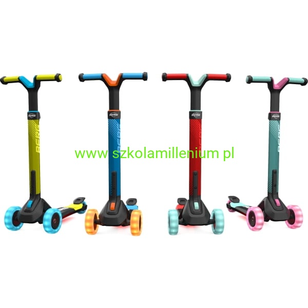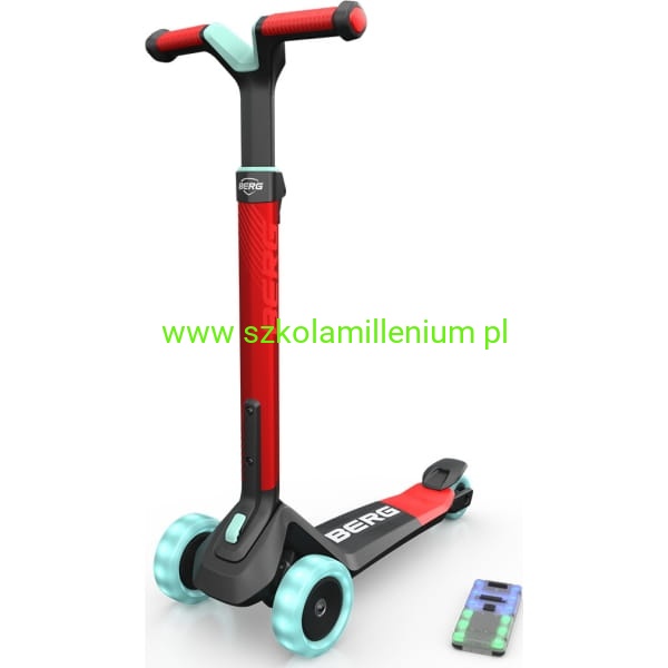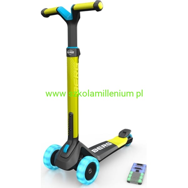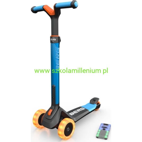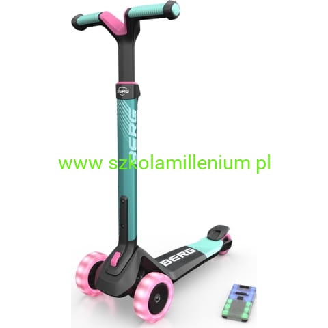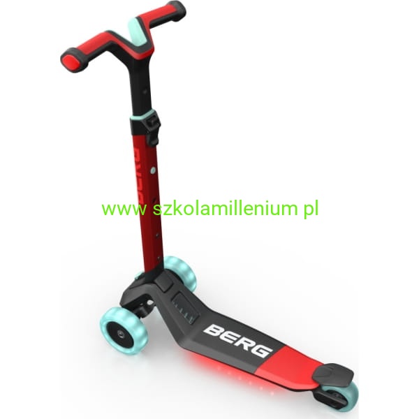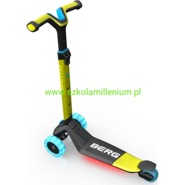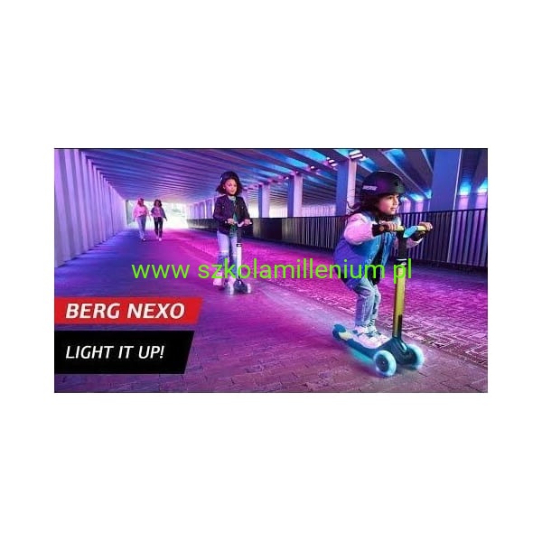 Hulajnoga BERG Nexo Lights LED wykonana z wysokiej jakości aluminium, tworzywa sztucznego i stali. Pojazd posiada antypoślizgowy materiał na podnóżku i uchwytach, co zapewnia stabilność i bezpieczeństwo podczas jazdy. Ergonomiczny, odporny na zużycie hamulec nożny oraz trzykołowa konstrukcja to dodatkowy atut. Wyposażona w blokadę i regulowaną trzystopniową kierownicę, która "rośnie" razem z dzieckiem, zapewniając optymalne dopasowanie i komfort jazdy przez wiele lat. Składana jednym kliknięciem, co ułatwia jej przechowywanie i transport. Dzięki specjalnemu uchwytowi można ją również wygodnie ciągnąć za sobą. Hulajnoga posiada szerokie, odporne na ścieranie i duże koła PU, które zapewniają płynną jazdę na różnych powierzchniach. Solidne wykonanie kół gwarantuje długą żywotność i niezawodność podczas codziennego użytkowania. Dodatkowo hulajnoga posiada podświetlane koła i pokład, co czyni ją jeszcze bardziej atrakcyjną.