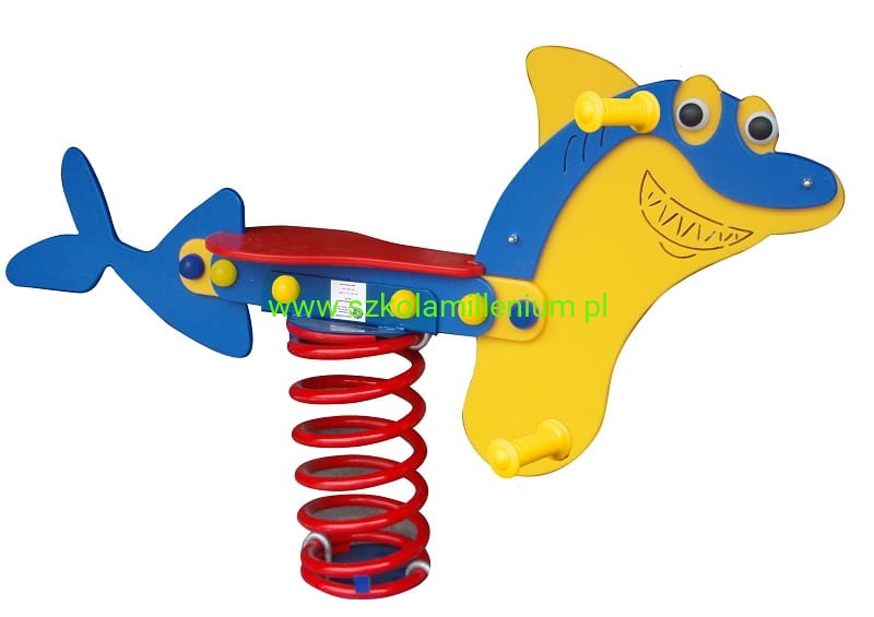Bujak jednoosobowy zwany sprężynowcem w kształcie REKINA to urządzenie kołyszące uwielbiane są przez dzieci, idealne uzupełnienie placu zabaw. Korpus wykonany z płyty HDPE barwionej w masie, co daje całkowitą odporność na odbarwienia i promieniowanie UV, natomiast elementy metalowe to stal potrójnie zabezpieczona antykorozyjnie poprzez cynkowanie ogniowe, chromianowanie i malowanie proszkowe powłoką poliestrową. Bujak z uchwytami dla rąk i podparciem dla nóg, przytwierdzony do sprężyny stalowej i mocowany do gruntu kotwą stalową.