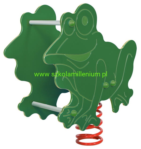 Bujak jednoosobowy zwany sprężynowcem w kształcie ŻABY to urządzenie kołyszące dla najmłodszych dzieci, idealne uzupełnienie placu zabaw. Korpus wykonany z płyty HDPE barwionej w masie, co daje całkowitą odporność na odbarwienia i promieniowanie UV, natomiast elementy metalowe to stal potrójnie zabezpieczona antykorozyjnie poprzez cynkowanie ogniowe, chromianowanie i malowanie proszkowe powłoką poliestrową. Bujak z uchwytami dla rąk i podparciem dla nóg, przytwierdzony do sprężyny stalowej i mocowany do gruntu kotwą stalową.