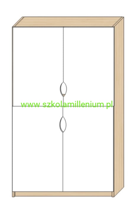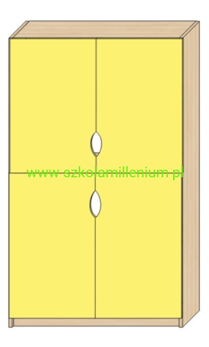 Szafka posiada cztery fronty zamykane, każdy z dwoma półkami w środku.