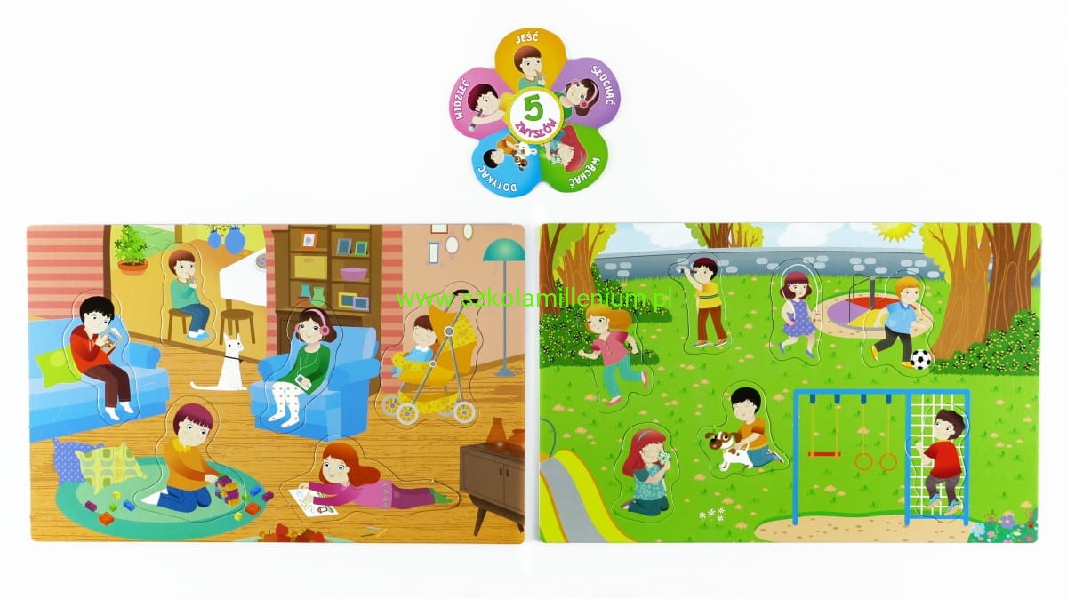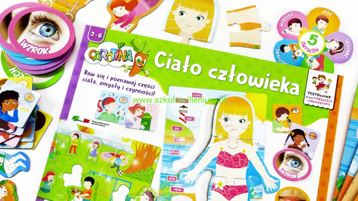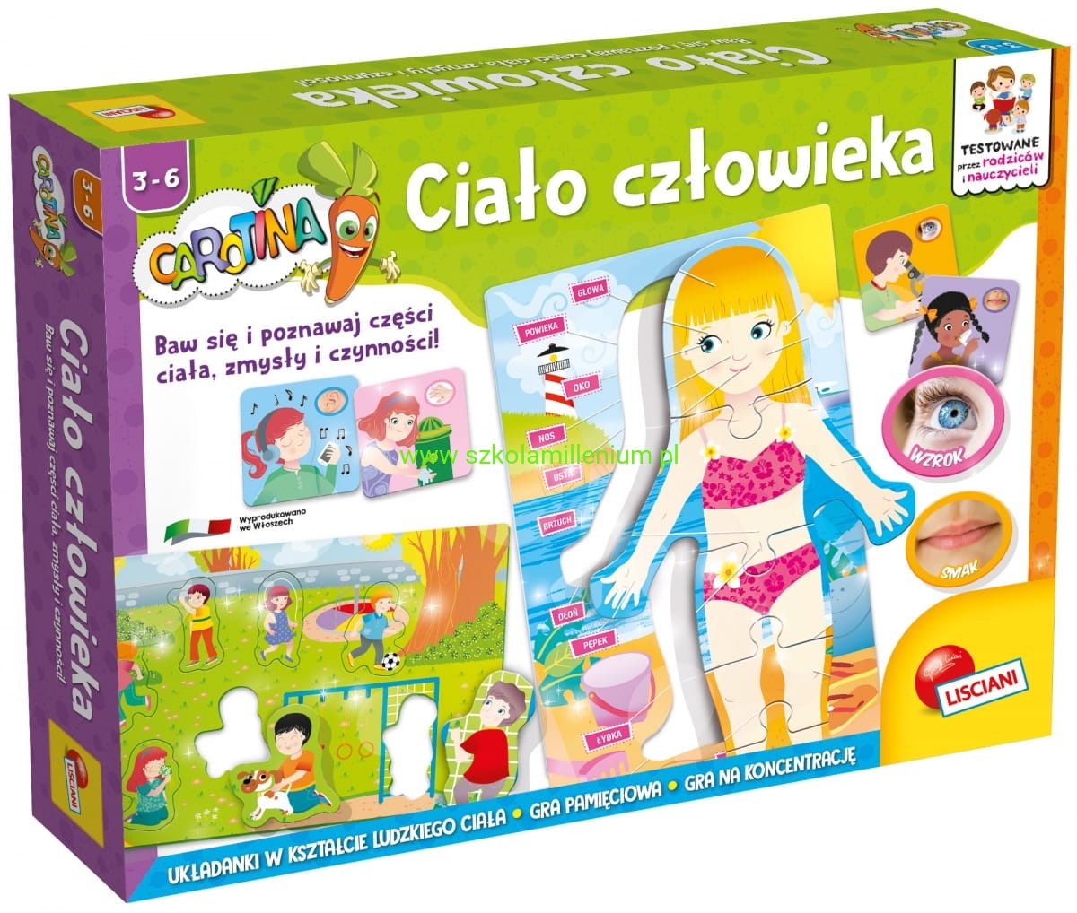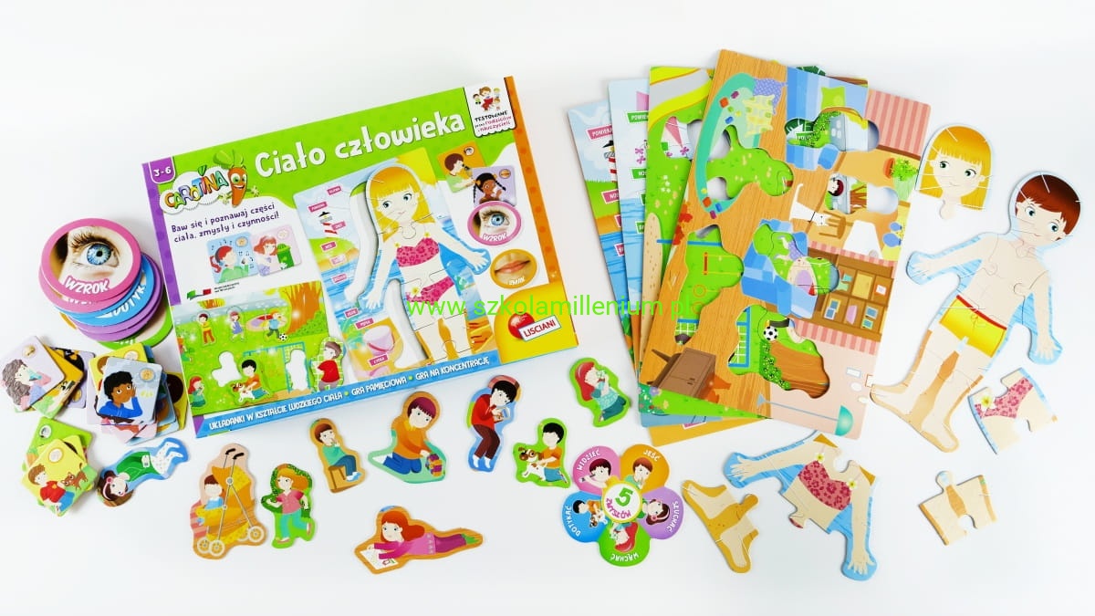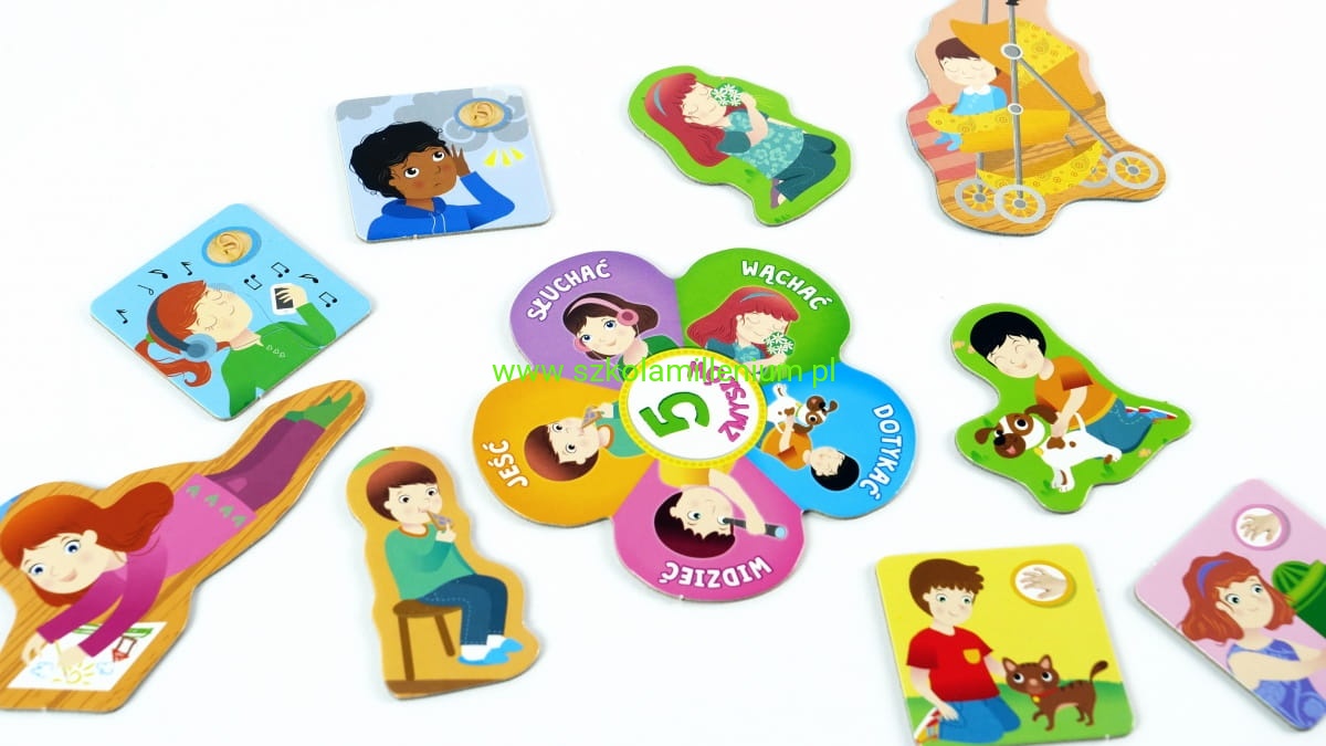 Gra dedykowana dla dzieci w wieku przedszkolnym, dzięki której w prosty sposób poznają ciało człowieka oraz pięć jego zmysłów. Opakowanie zawiera puzzle do złożenia przedstawiające budowę człowieka oraz zabawną loterię ze zmysłami, w którą dzieci mogą grać razem ze swoimi przyjaciółmi.