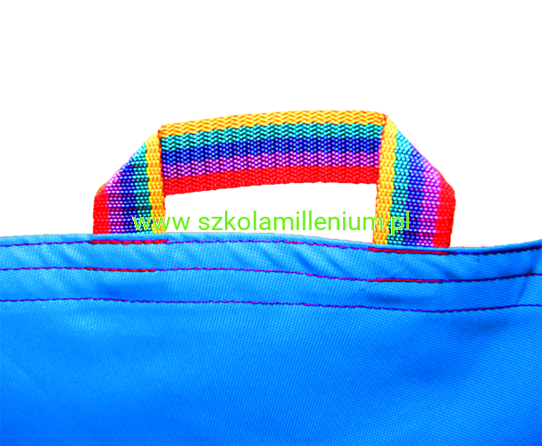 Zestaw zawiera chustę o średnicy 3m z 12 kieszeniami, wzmacnianą taśmą i 24 uchwytami oraz praktyczny, kolorowy pokrowiec z uchwytem.