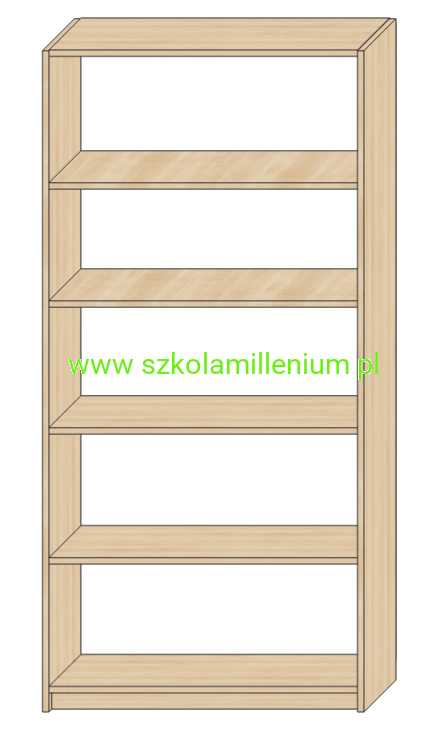 Szafka z pięcioma otwartymi półkami i regulacją wysokości.