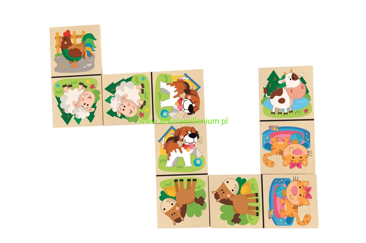 Domino drewniana gra zwierzęta gospodarskie to świetna zabawka dla najmłodszych dzieci. Gra pomaga w nauce rozpoznawania i dopasowywania obrazków, rozwija zdolności manualne oraz koncentrację. Uczy się także zasad rywalizacji.