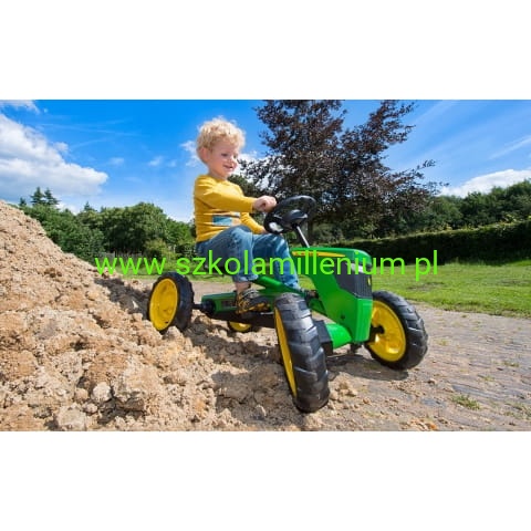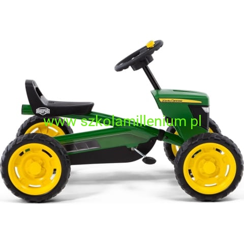 Nowy, niepowtarzalny wygląd został specjalnie przygotowany tak, by nikt nie przeszedł obok niego obojętnie. Wysoka jakość użytych materiałów gwarantuje długie, bezproblemowe użytkowanie. System napędu bezpośredniego sprawia, że pedałowanie jest lekkie i przyjemne i nie sprawia dzieciom trudności. Dzięki 4 oponom EVA gokart Buzzy John Deere pewnie trzyma się podłoża, a opony nigdy się nie przebijają. Kierownica i siedzenie są regulowane. Możliwość jazdy do przodu i do tyłu.