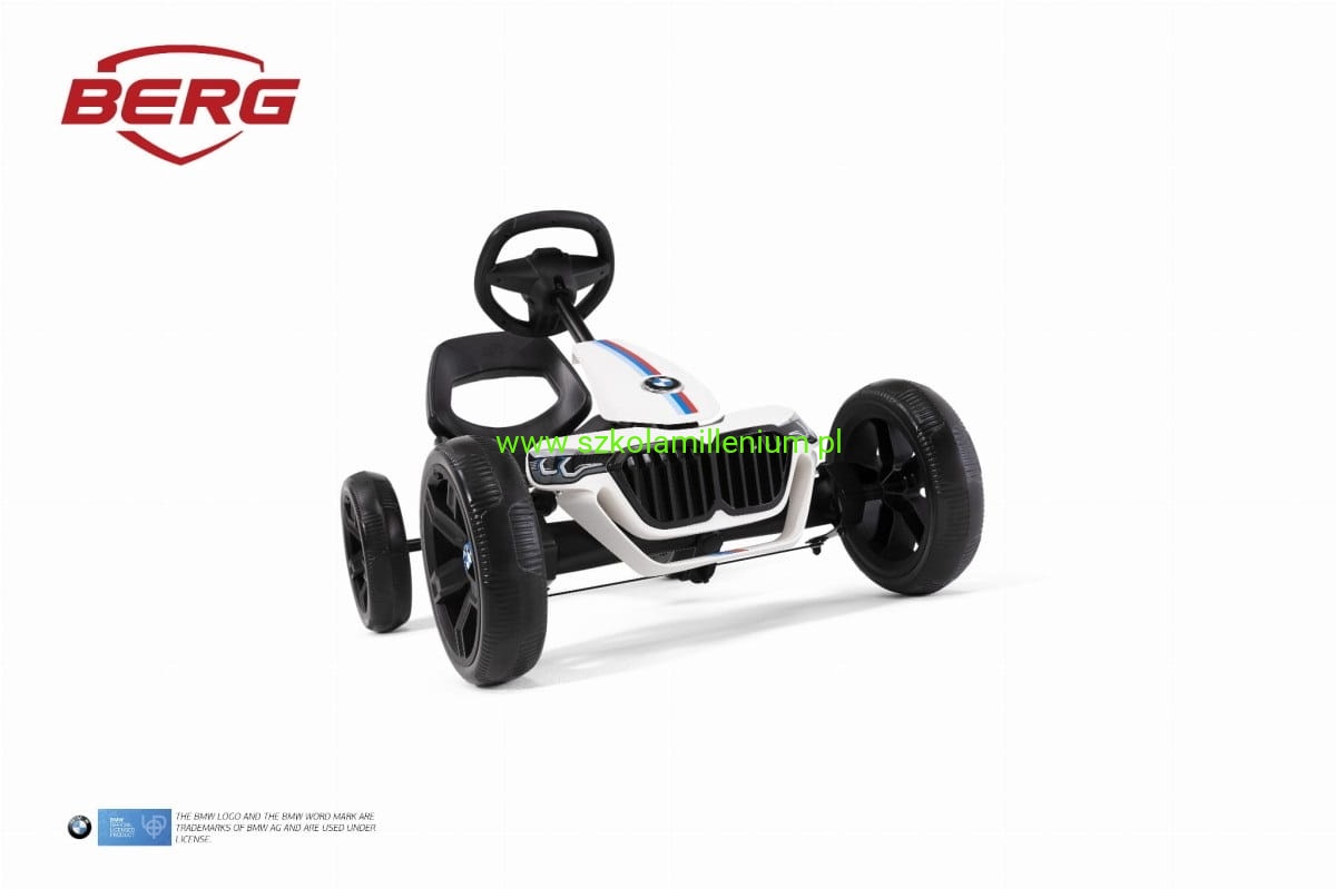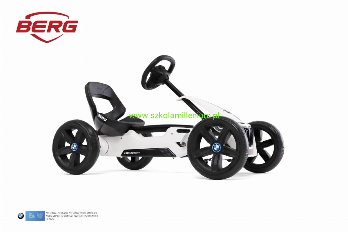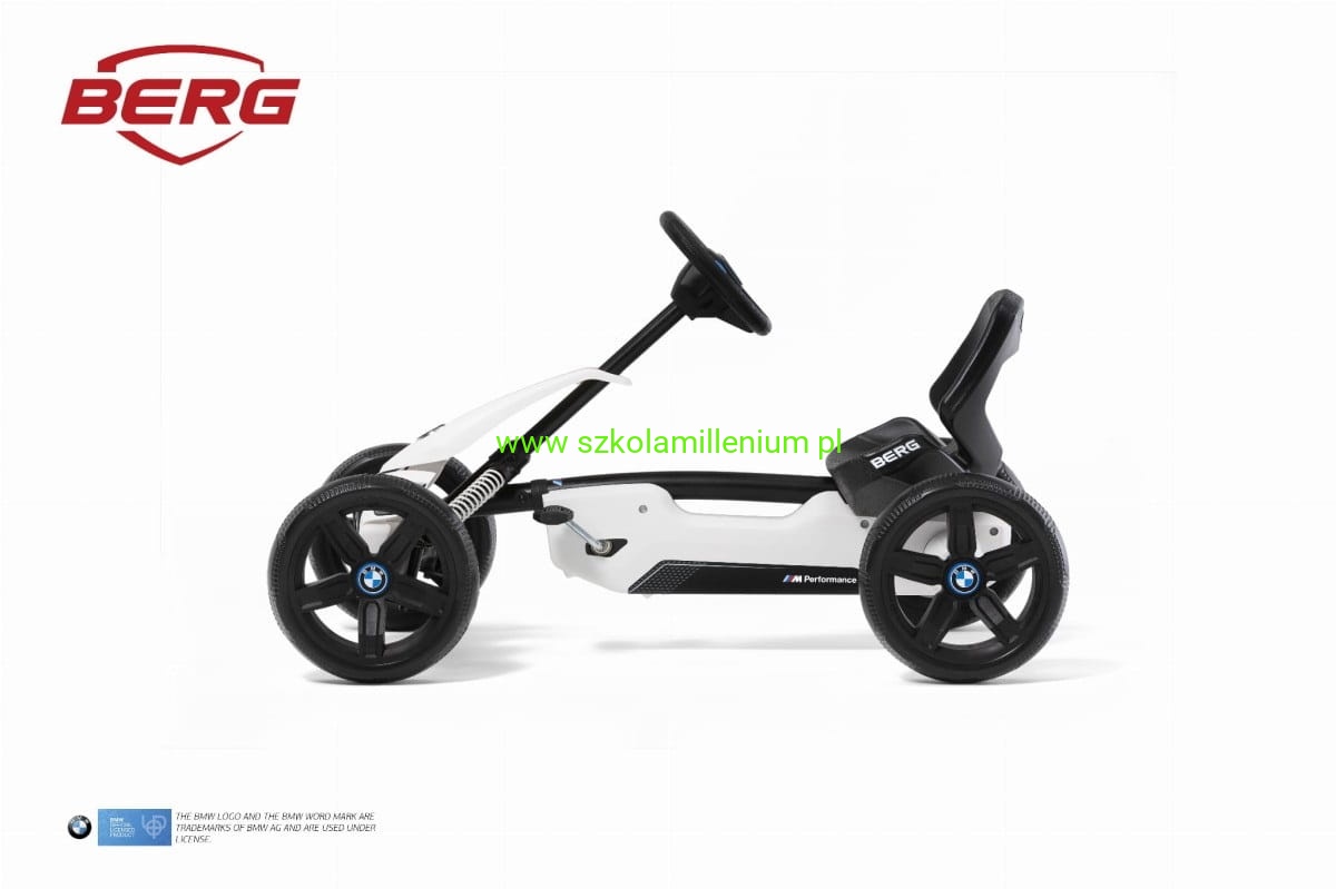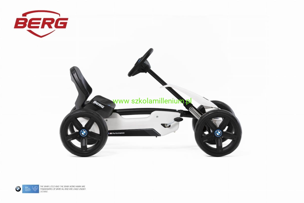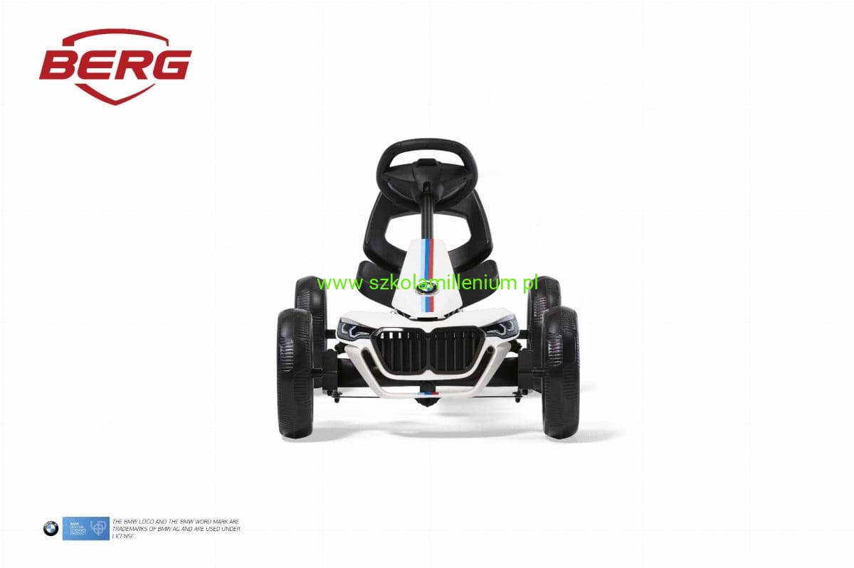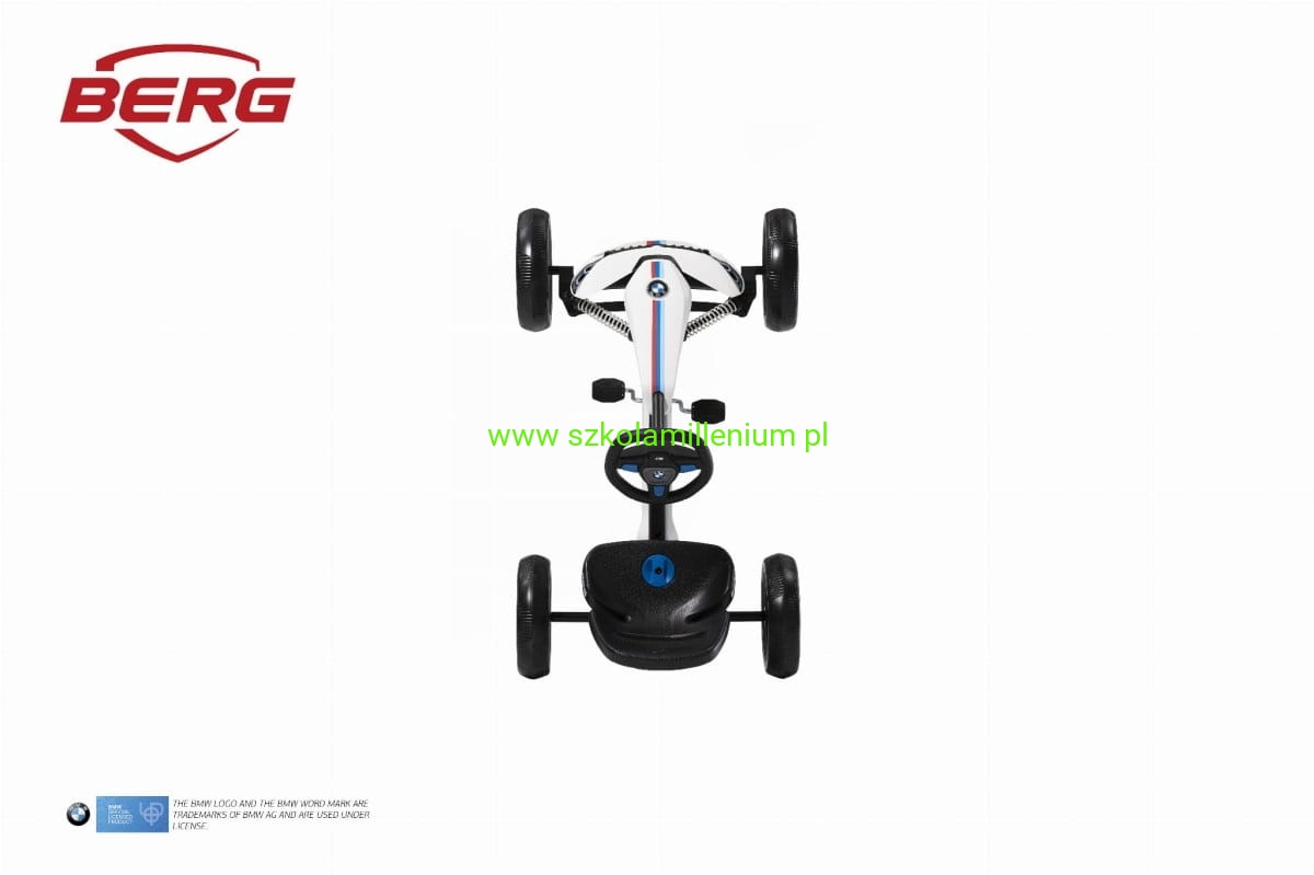 Atrakcyjny wygląd i charakterystyczne elementy designu BMW nadają gokartowi niepowtarzalny wygląd, który zachwyci każdego młodego entuzjastę motoryzacji. Dzięki wykorzystaniu pianki odpornej na ścieranie 10-calowe opony EVA zapewniają doskonałą wytrzymałość i komfort. Skrętna, wahadłowa oś gwarantuje doskonałą przyczepność na drodze, zapewniając bezpieczeństwo podczas jazdy. Regulowane siedzenie kubełkowe z pokrętłem umożliwia łatwą regulację pozycji siedzenia, a kierownica z modułem dźwiękowym doda realizmu podczas jazdy. Odtwarza dźwięk klaksonu, hamowania oraz silnika. Bezpośredni układ napędowy zapewnia płynna i efektywną jazdę, możliwość jazdy do przodu i do tyłu. Konstrukcja stalowa jest solidna i trwała, zapewniająca stabilność i wytrzymałość. Gokart wyposażony jest w uchwyt na ramię, który ułatwia przenoszenie.