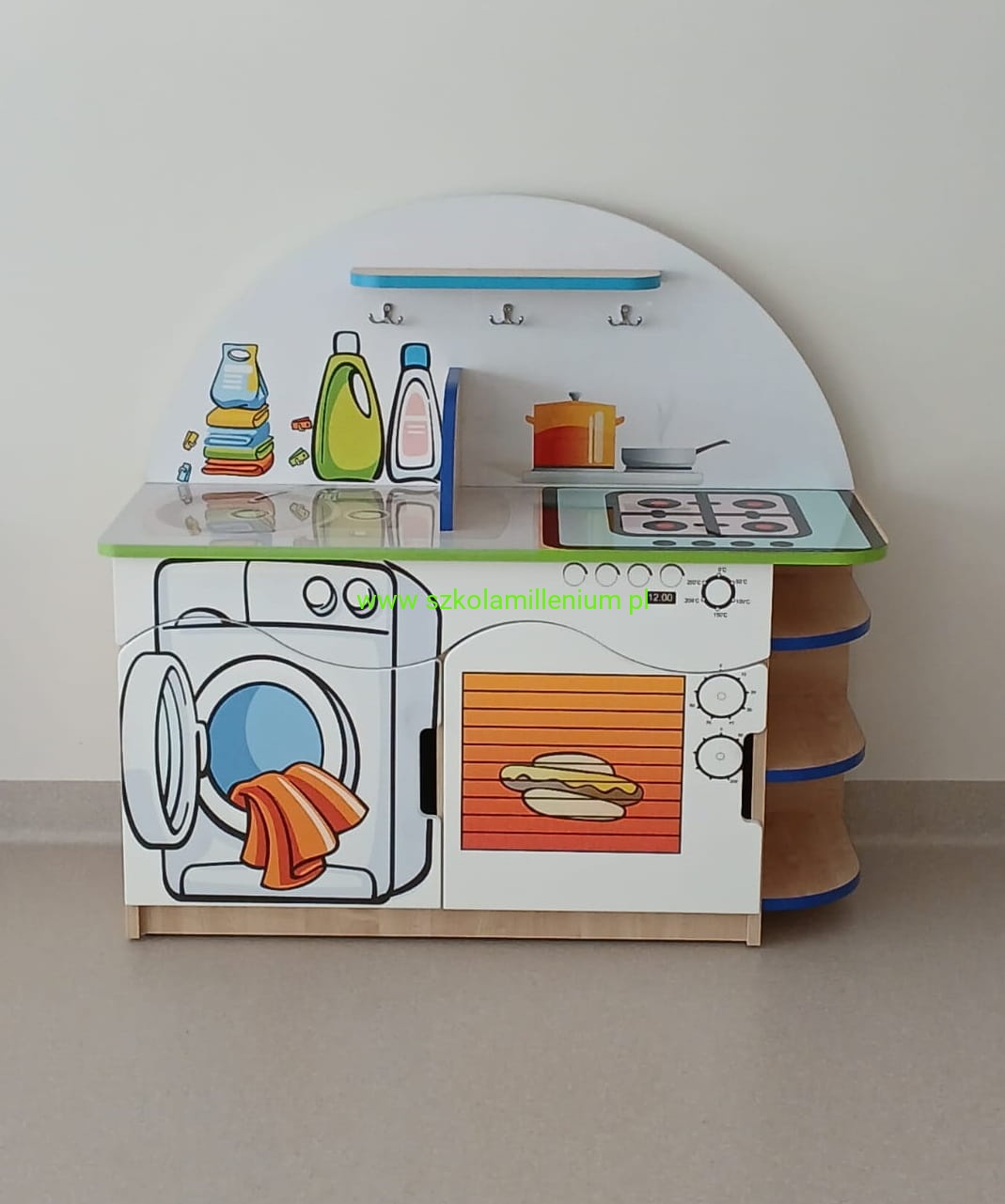 Kącik tematyczny kuchnia spełnia funkcje zmierzające ku usamodzielnianiu. Dzięki zabawie dzieci rozwijają umiejętności ze wszystkich czterech obszarów realizacji podstawy programowej – fizycznej, społecznej, emocjonalnej i poznawczej. Kącik uczy dzieci dobrej organizacji w kuchni, a także rozwija komunikację z rówieśnikami.