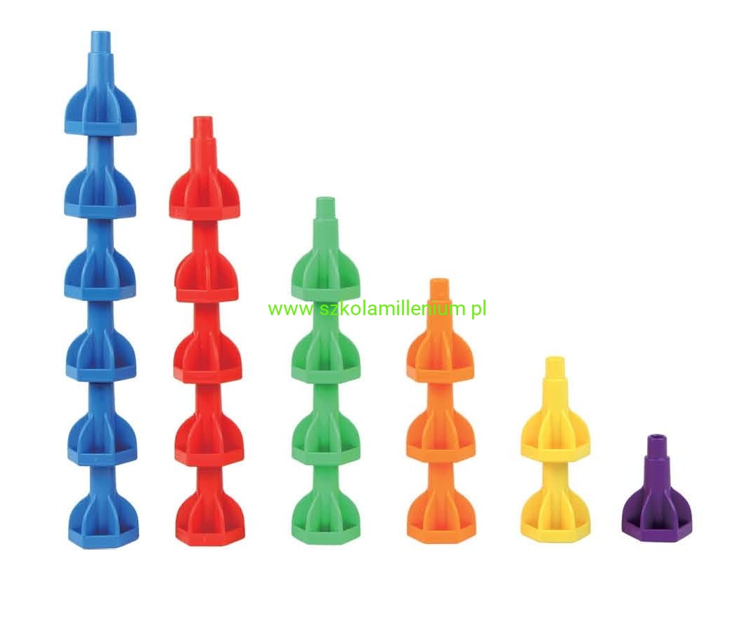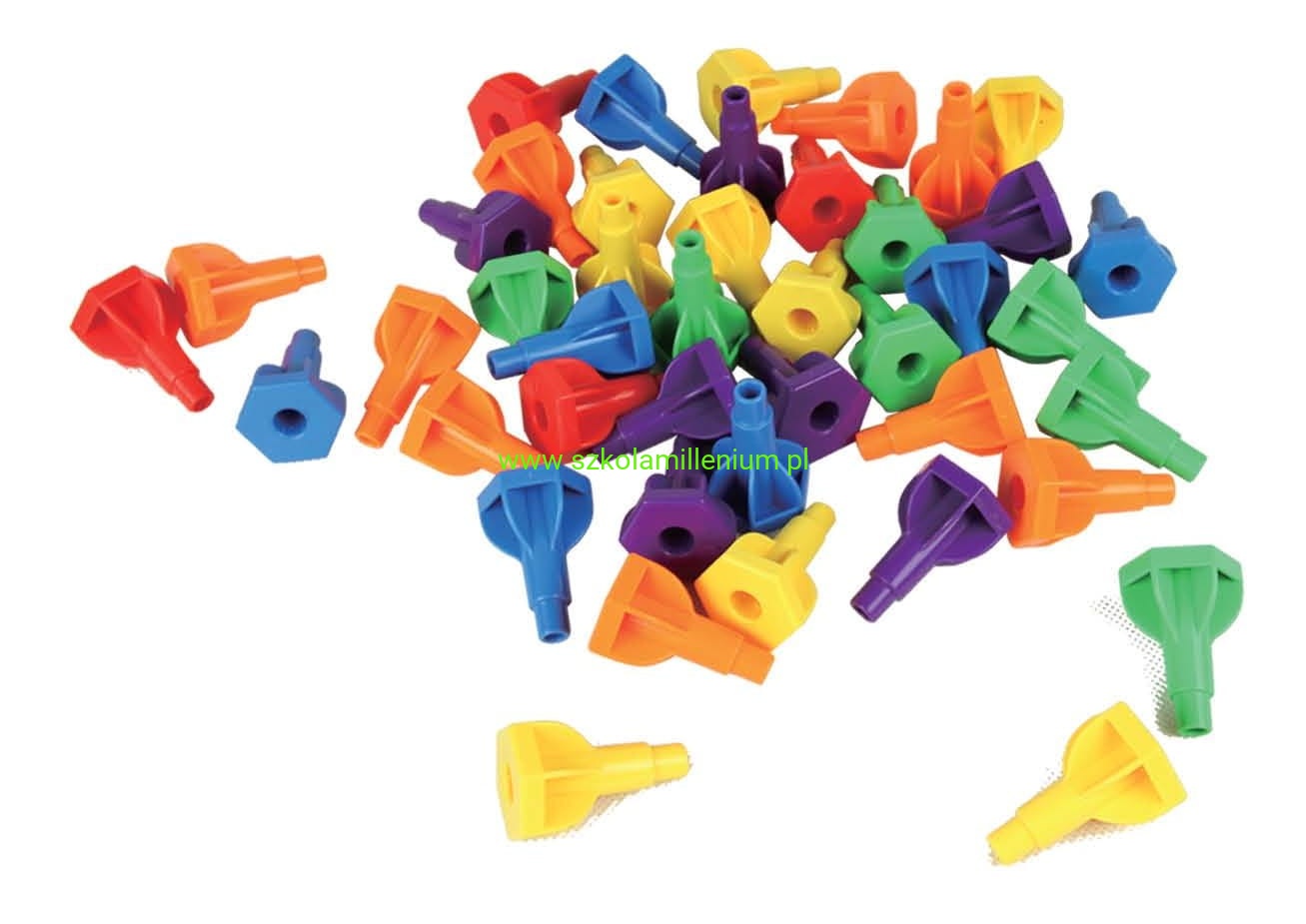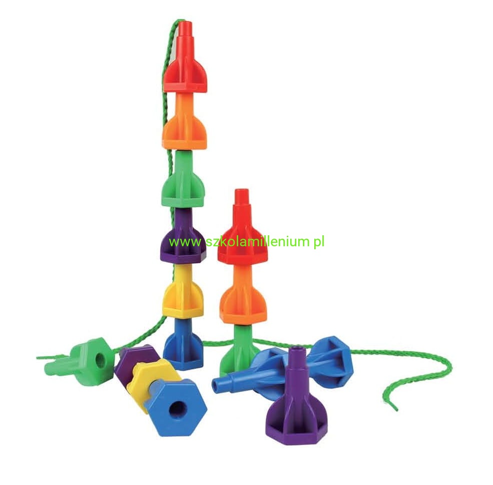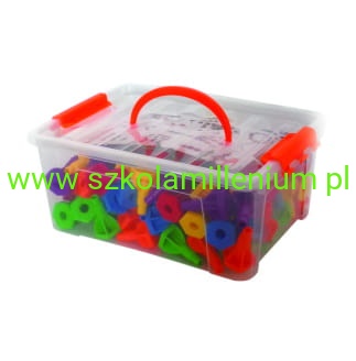Klocki konstrukcyjne pozytywnie wpływają na rozwój dziecka, zachęcając je do kreatywnego i logicznego myślenia, stymulując zmysły, umożliwiając ćwiczenie zdolności manualnych oraz koordynacji ręka-oko. Zestaw zawiera kolorowe elementy, które można nakładać na siebie lub nawlekać, przewlekać przez sznurki, tworząc kreatywne wzory i figury. Klocki są bezpieczne, odporne na uszkodzenia mechaniczne, funkcjonalne, a także wielokolorowe i atrakcyjne wizualnie. Dołączony pojemnik z zamykaną pokrywą i uchwytami, sprawi, że dziecko po zakończonej zabawie pozostawi porządek na swoim stoliku. Zestaw idealnie sprawdzi się do sal lekcyjnych, przedszkoli oraz środowiska domowego.