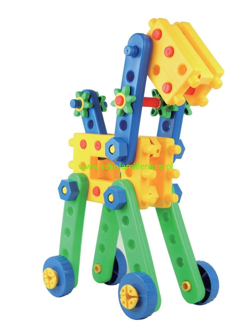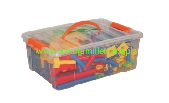 Klocki konstrukcyjne pozytywnie wpływają na rozwój dziecka, zachęcając je do kreatywnego i logicznego myślenia, stymulując zmysły, umożliwiając ćwiczenie zdolności manualnych oraz koordynacji ręka-oko. Za pomocą śrub skręcaj elementy o różnych kształtach i twórz konstrukcję o jakich tylko zamarzysz: samochody, motory, roboty, czołgi, zwierzęta. W zestawie 88 elementów, które pomogą Ci stworzyć dowolny projekt w łatwy i elastyczny sposób. Całość przechowujemy w dołączonym pojemniku z zamykaną pokrywą i uchwytami. To idealny dodatek do sal lekcyjnych, przedszkoli oraz środowiska domowego.