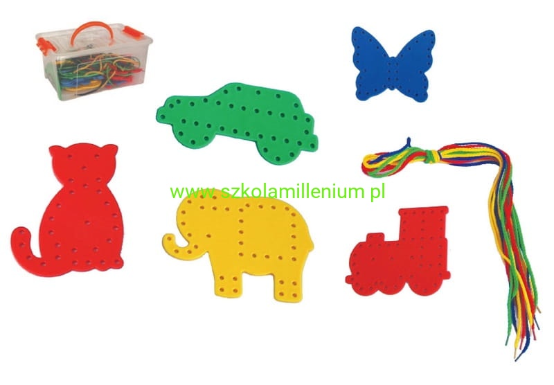 Ilość elementów: 32 kształty, 16 sznurków