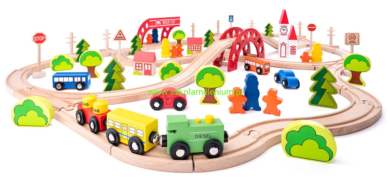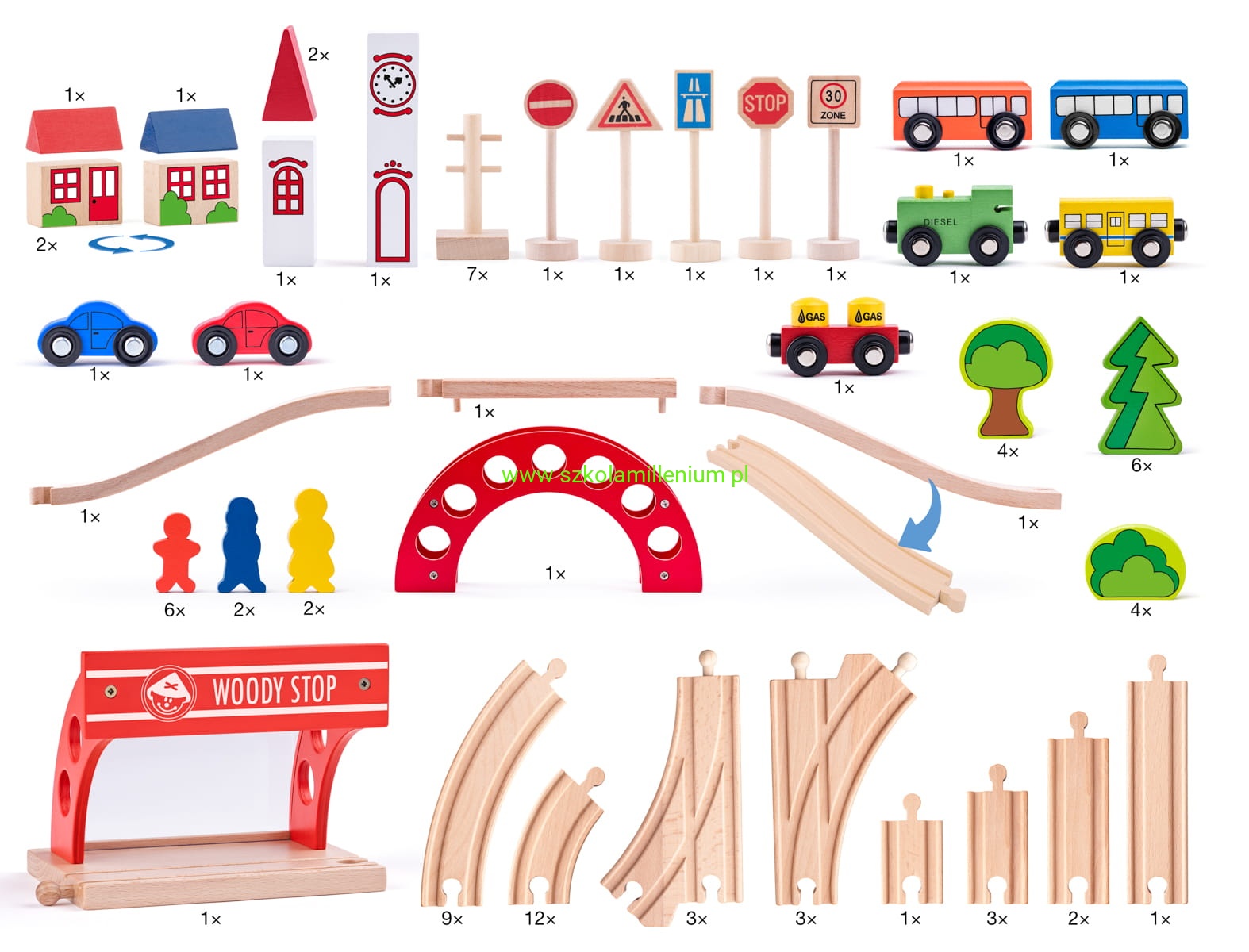 Starannie dopracowane akcesoria nadają zestawowi unikalny charakter, a ich oryginalny design wyróżnia kolejkę na tle standardowych produktów dostępnych na rynku. Dodatkowo wszystkie elementy są kompatybilne z większością drewnianych kolejek, co pozwala na łatwą rozbudowę i łączenie z innymi zestawami.