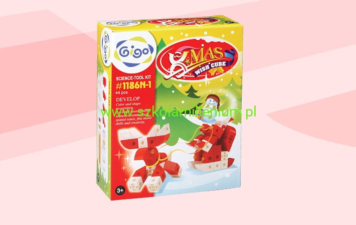 Zabawa klockami kształtuje wyobraźnię przestrzenną malucha i wspomaga rozwój koordynacji wzrokowo-ruchowej. Ten zestaw kreatywnych klocków wraz z książeczką o kolorystyce i tematyce świątecznej składające się z 44 części, z których dziecko zbuduje renifera, , domek, prezent oraz sanie z Mikołajem, stanowią wspaniałe narzędzie do rozwijania wyobraźni, sprawności manualnej i kreatywności u dzieci w przedszkolu.