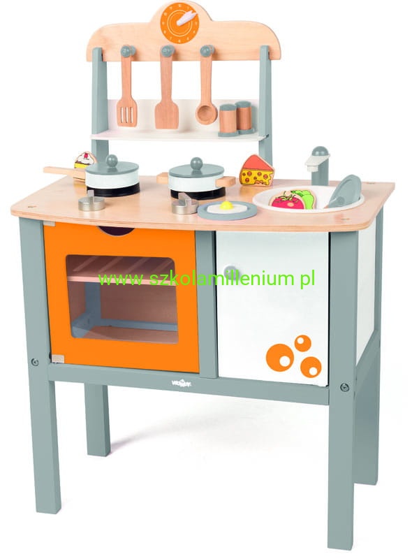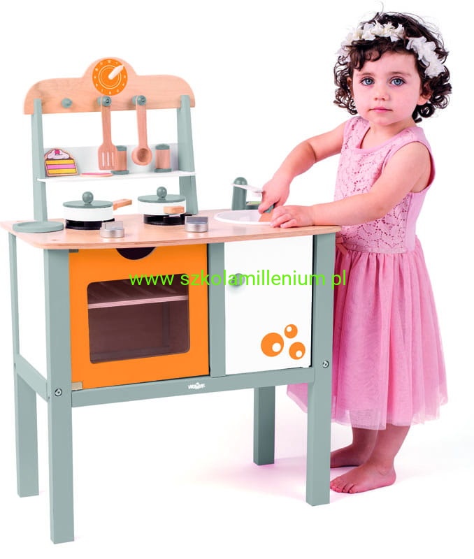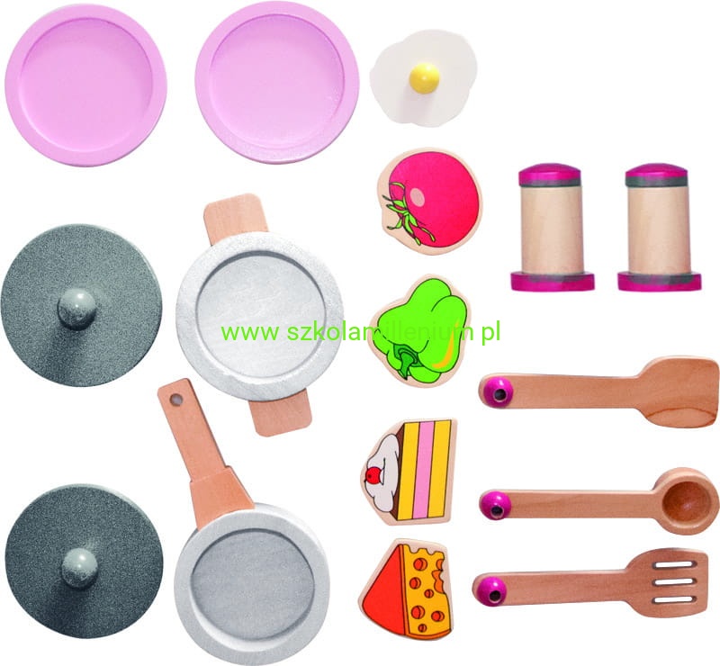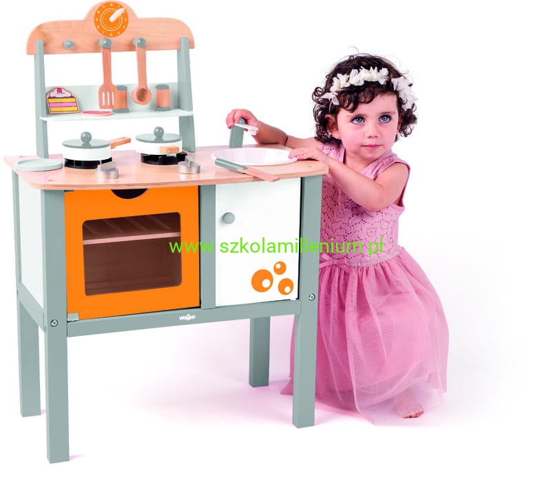 Kuchnia zawiera wiele dodatków (m.in. garnek, patelnia, solniczka, pieprzniczka, chochla, pokrywka). Ma otwierane drzwiczki, obrotowe kurki i obrotowe wskazówki w zegarze. Blat jest na wysokości 50cm.