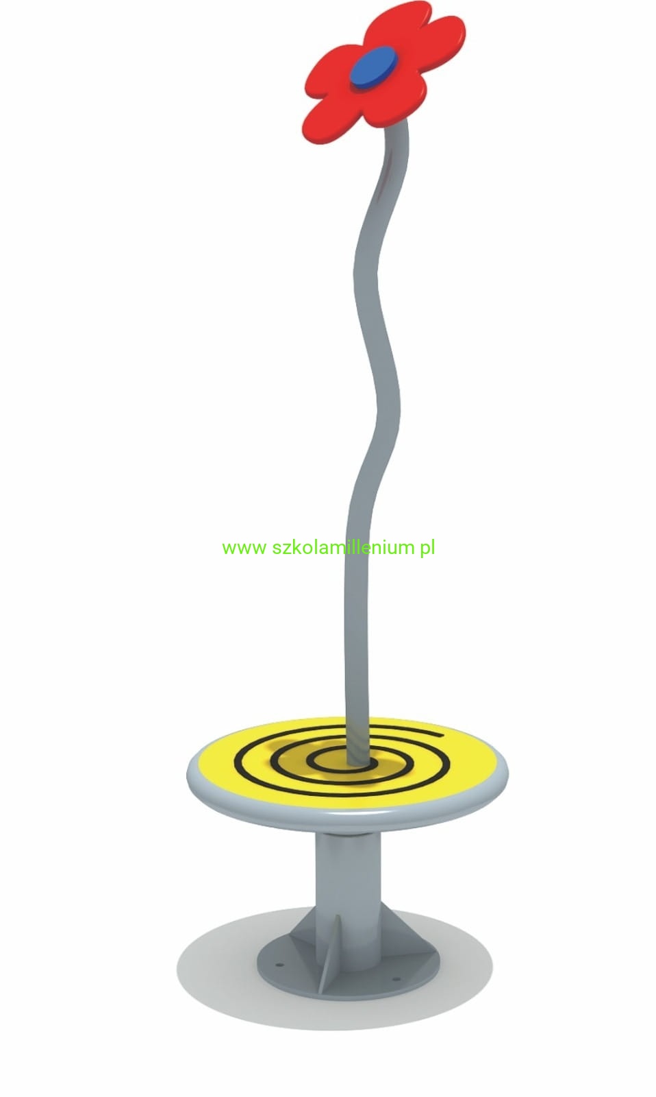 Obrotowy kwiatek to element placu zabaw, wykonany z tworzywa sztucznego LLDPE i stali zabezpieczonej poprzez cynkowanie i malowanie proszkowe. Dzieci mogą obracać się wokół osi centralnej, co dostarcza im zabawy i ćwiczeń fizycznych. To przyjemny sposób na rozwijanie koordynacji ruchowej i równowagi.