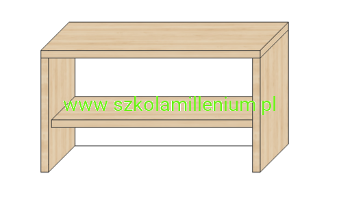 Ławka z dwoma otwartymi półkami pod siedziskiem.