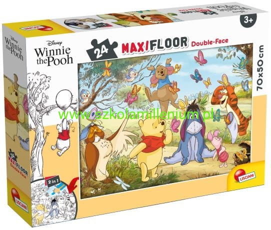 Puzzle MAXI z bajki Kubuś Puchatek to rodzaj układanki składającej się z 24 różnych elementów, każdy ma swój unikalny kształt i kolor, co sprawia, że układanie puzzli jest wyzwaniem logicznym i wizualnym.