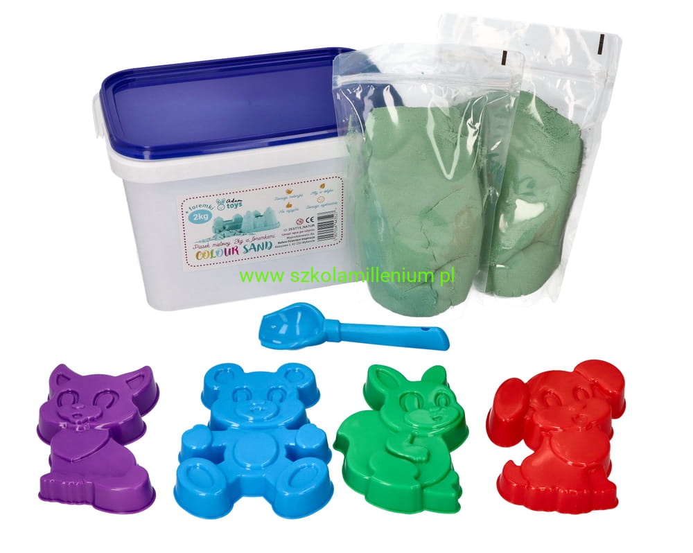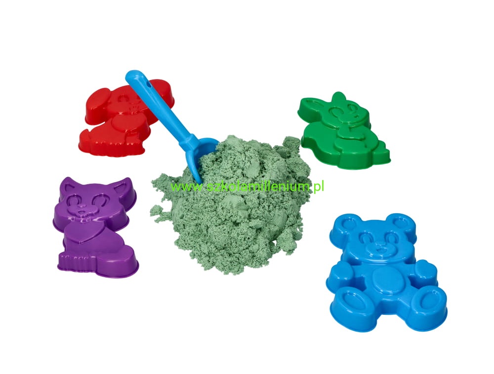 PIASEK KINETYCZNY 2 KG MIĘTOWY Z FOREMKAMI "ZWIERZĄTKA" + ŁOPATKA