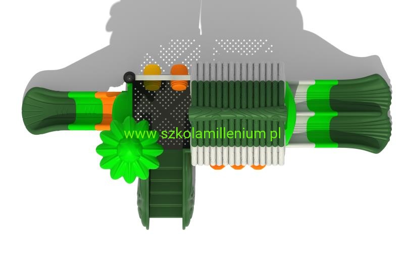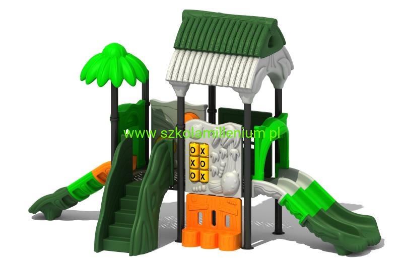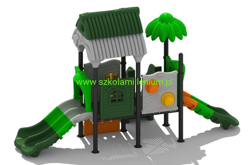 Zestaw składa się z kilku podestów, schodków, panelu kółko i krzyżyk i zjeżdżalni: podwójnej i prostej, które zapewnią najmłodszym wiele godzin świetnej zabawy. Plac posiada wiele elementów dekoracyjnych takich jak daszki oraz panele z tworzywa LLDPE lub HDPE o szerokiej gamie kolorystycznej, które przyciągają uwagę nie tylko najmłodszych.