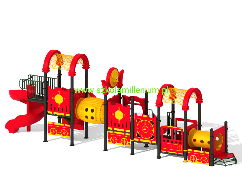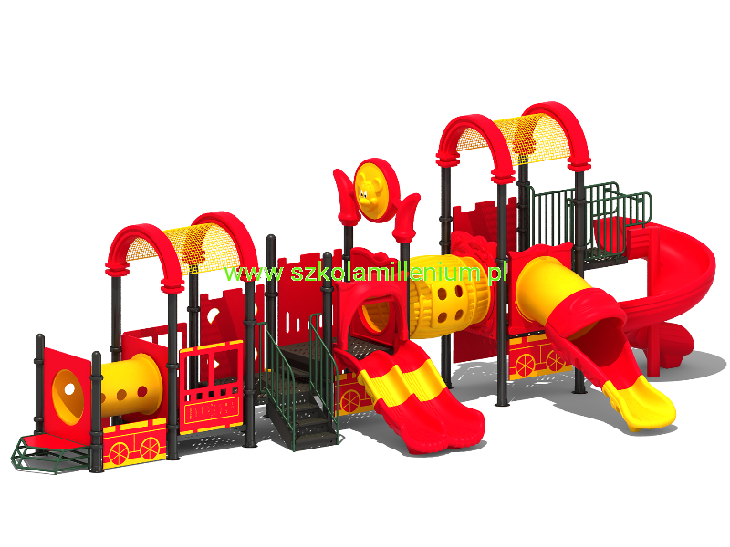 - Wszystkie elementy placu zabaw są łączone za pomocą pierścieni oraz klem i skręcane śrubami. Mocowanie rur z platformą za pomocą dwóch nitonakrętek i dwóch śrub M10.