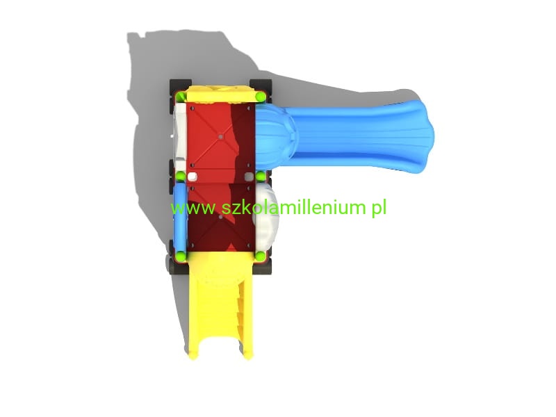 - Wszystkie elementy placu zabaw są łączone za pomocą pierścieni oraz klem i skręcane śrubami. Mocowanie rur z platformą za pomocą dwóch nitonakrętek i dwóch śrub M10.