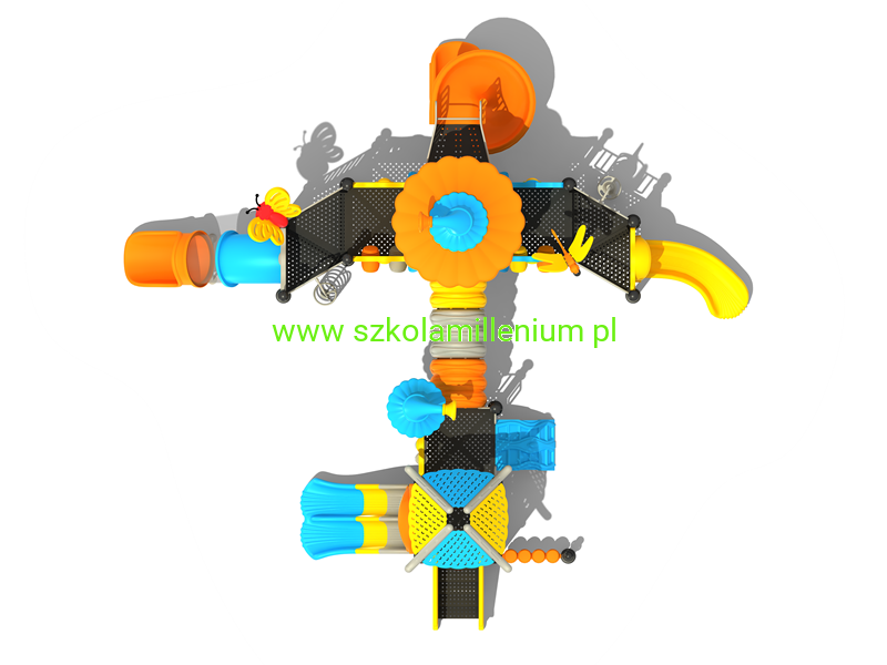 - Wszystkie elementy placu zabaw są łączone za pomocą pierścieni oraz klem i skręcane śrubami. Mocowanie rur z platformą za pomocą dwóch nitonakrętek i dwóch śrub M10.
