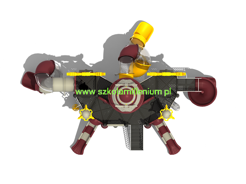 - Wszystkie elementy placu zabaw są łączone za pomocą pierścieni oraz klem i skręcane śrubami. Mocowanie rur z platformą za pomocą dwóch nitonakrętek i dwóch śrub M10.