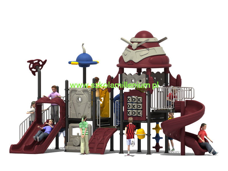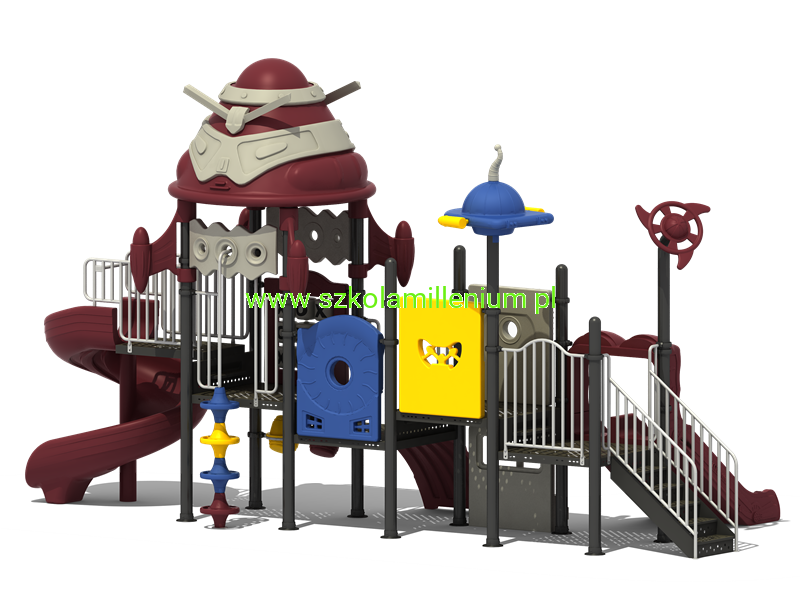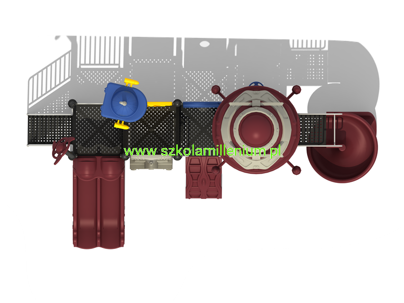 - Wszystkie elementy placu zabaw są łączone za pomocą pierścieni oraz klem i skręcane śrubami. Mocowanie rur z platformą za pomocą dwóch nitonakrętek i dwóch śrub M10.