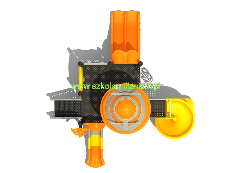 - Wszystkie elementy placu zabaw są łączone za pomocą pierścieni oraz klem i skręcane śrubami. Mocowanie rur z platformą za pomocą dwóch nitonakrętek i dwóch śrub M10.