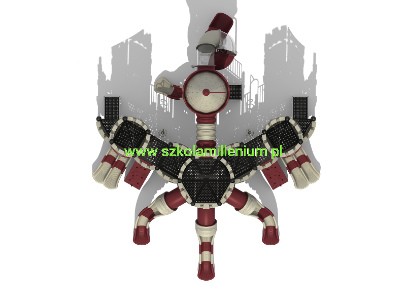 - Materiał: rura stalowa Φ114 mm galwanizowana lakierowana proszkowo, połączenia i obejmy aluminiowe lakierowane proszkowo, platformy wieżyczek pokryte gumą antypoślizgową.