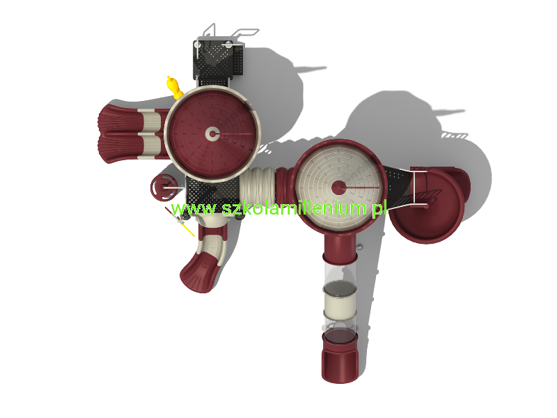 - Wszystkie elementy placu zabaw są łączone za pomocą pierścieni oraz klem i skręcane śrubami. Mocowanie rur z platformą za pomocą dwóch nitonakrętek i dwóch śrub M10.