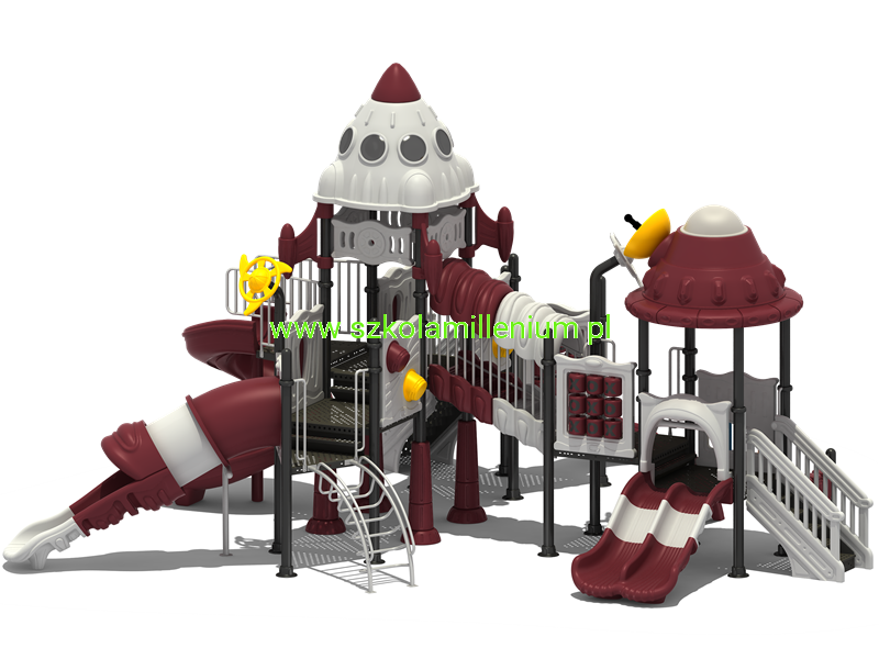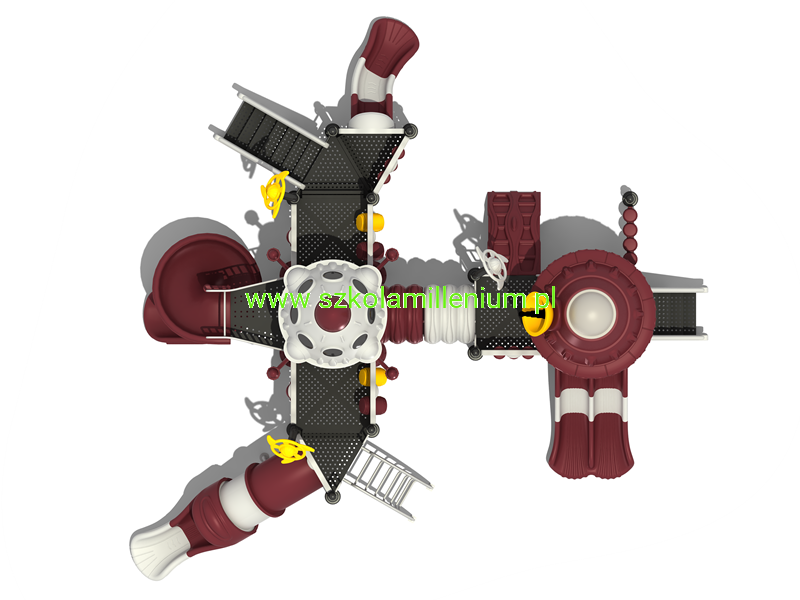 - Wszystkie elementy placu zabaw są łączone za pomocą pierścieni oraz klem i skręcane śrubami. Mocowanie rur z platformą za pomocą dwóch nitonakrętek i dwóch śrub M10.