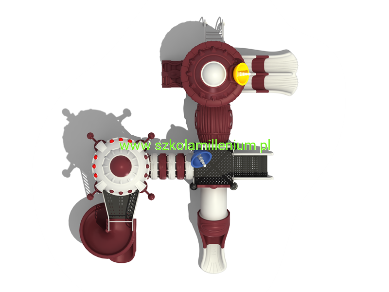 - Wszystkie elementy placu zabaw są łączone za pomocą pierścieni oraz klem i skręcane śrubami. Mocowanie rur z platformą za pomocą dwóch nitonakrętek i dwóch śrub M10.