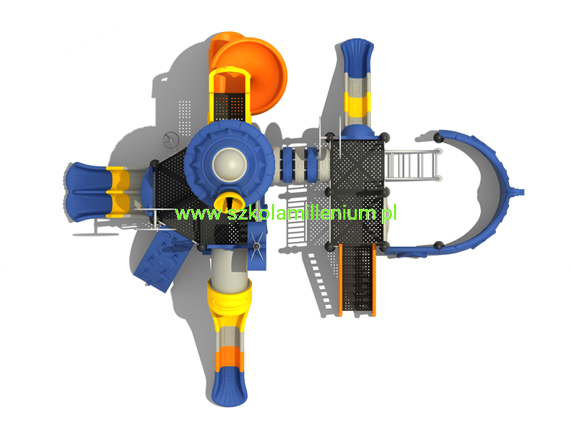 - Wszystkie elementy placu zabaw są łączone za pomocą pierścieni oraz klem i skręcane śrubami. Mocowanie rur z platformą za pomocą dwóch nitonakrętek i dwóch śrub M10.