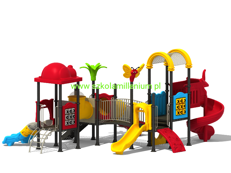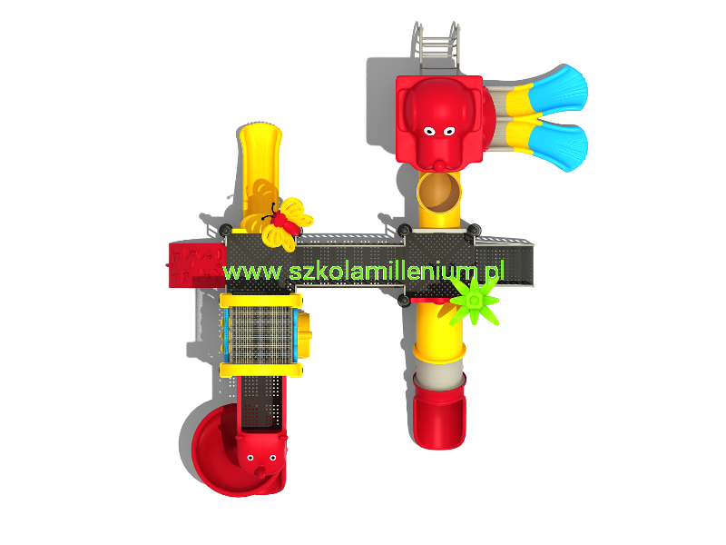 - Wszystkie elementy placu zabaw są łączone za pomocą pierścieni oraz klem i skręcane śrubami. Mocowanie rur z platformą za pomocą dwóch nitonakrętek i dwóch śrub M10.