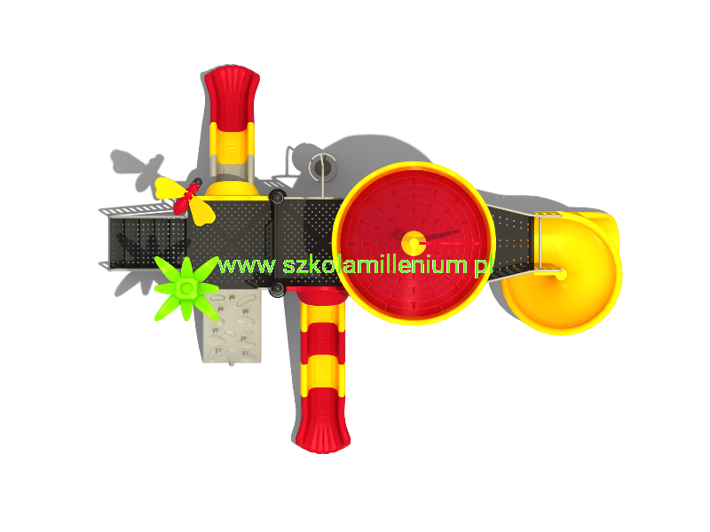 - Wszystkie elementy placu zabaw są łączone za pomocą pierścieni oraz klem i skręcane śrubami. Mocowanie rur z platformą za pomocą dwóch nitonakrętek i dwóch śrub M10.