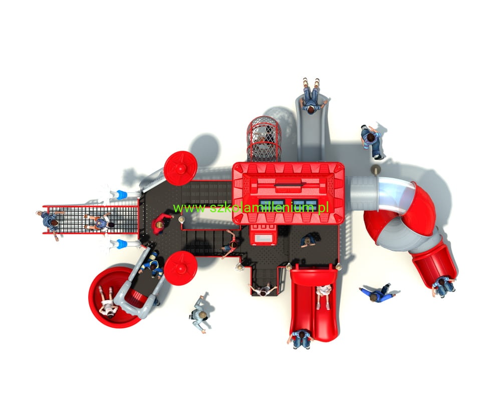Zestaw zabawowy FIRE 16 to rozbudowany, tematyczny plac zabaw inspirowany światem straży pożarnej. Intensywna czerwono-szara kolorystyka oraz elementy przypominające wozy strażackie tworzą wyjątkową przestrzeń, w której dzieci mogą wcielić się w rolę małych ratowników i przeżywać emocjonujące przygody.