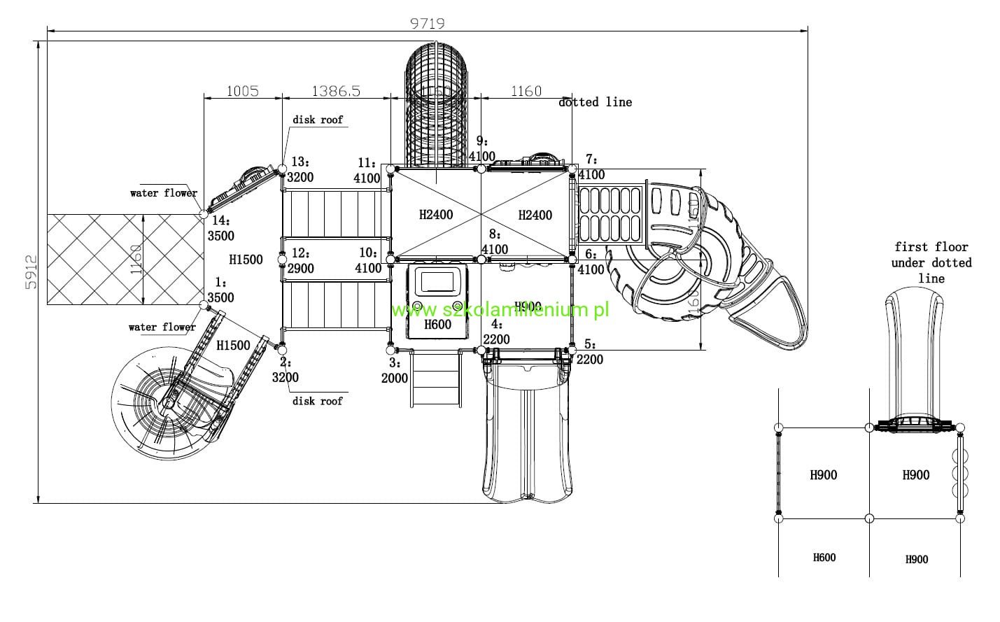 - zjeżdżalnia podwójna z wys. 90 cm