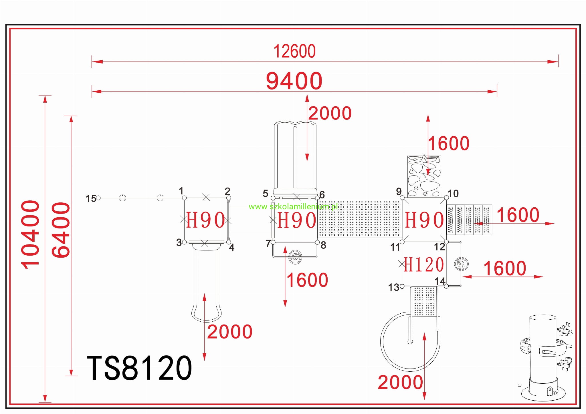 - Wszystkie elementy placu zabaw są łączone za pomocą pierścieni oraz klem i skręcane śrubami. Mocowanie rur z platformą za pomocą dwóch nitonakrętek i dwóch śrub M10.