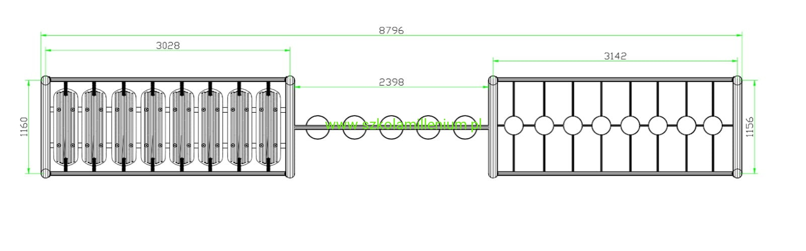 Wymiary urządzenia: 8,6 m x 1,25 m x 2,3 m.
