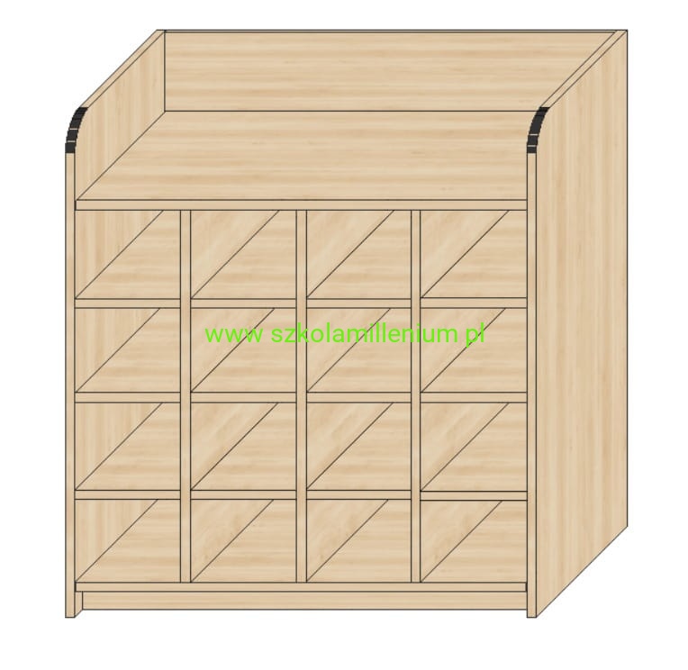 Szafka posiada szesnaście półek otwartych, powyżej nich wysunięte boki i miejsce na przewinięcie malucha.