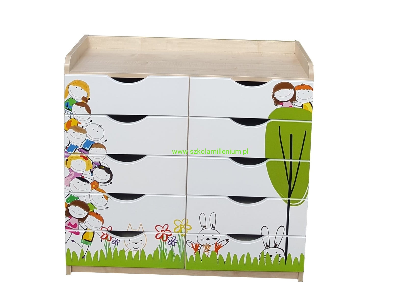 Szafka posiada dziesięć szuflad na prowadnicach kulowych.