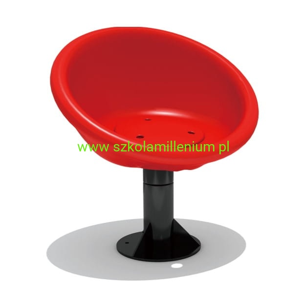 Obrotowe siedzisko wykonane z tworzywa LLDPE, części metalowe galwanizowane i lakierowane proszkowo. Model zawiera okrągłe siedzisko zamocowane na metalowej osi obrotu. Wygodne siedzisko, zaprojektowane tak, aby dziecko swobodnie mogło się kręcić.
