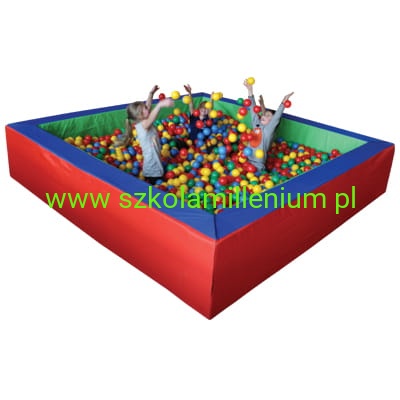 165 cm x 165 cm x 50 cm + 2000 piłek plastikowych w komplecie o średnicy 7 cm.