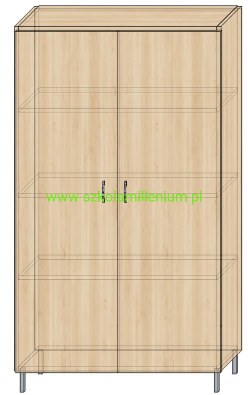 Szafka posiada dwa fronty zamykane z czterema półkami w środku.