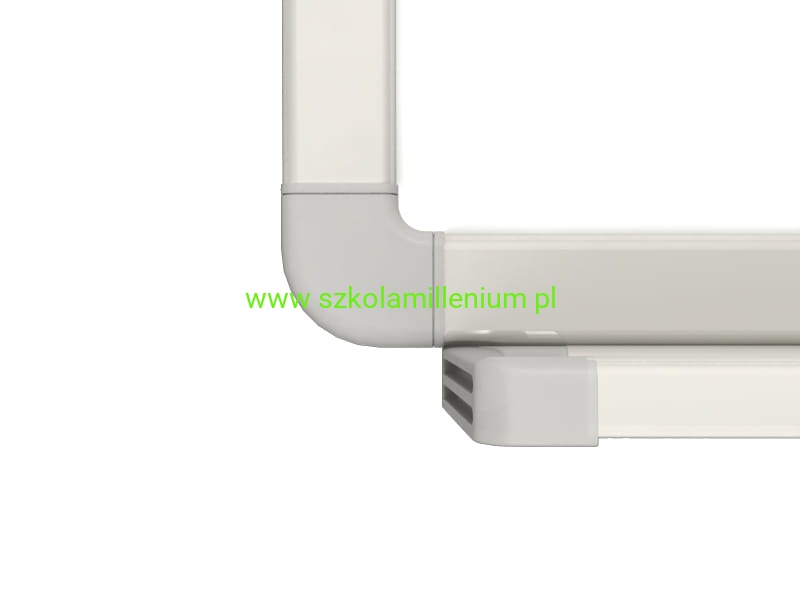 Magnetyczna biała. Wykończenie :Rama aluminiowa wraz z półką na przybory, zaokrąglone rogi, zakończona abs. Tył: blacha ocynkowana.