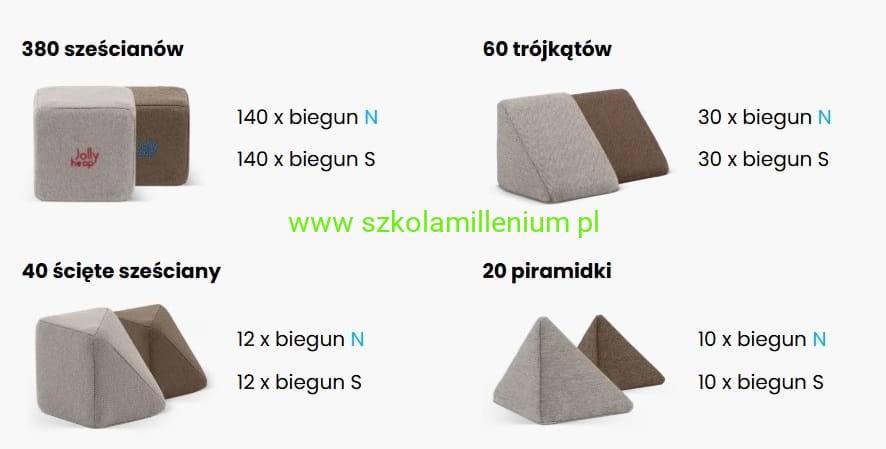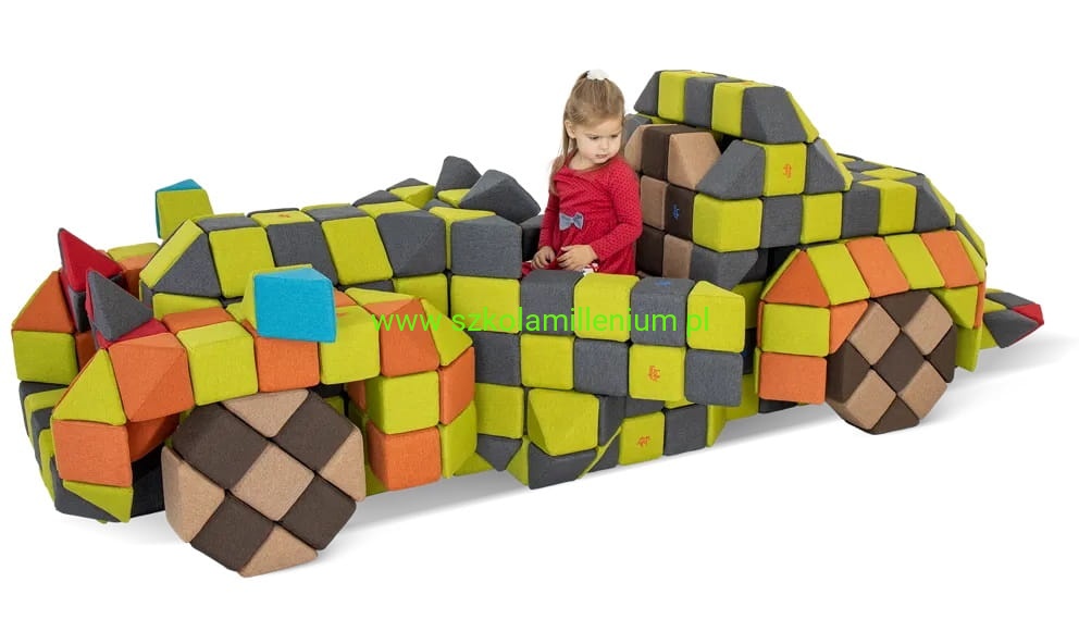 Zestaw składa się z 500 klocków magnetycznych w 4 kształtach co pozwala swobodnie budować figury, kryjówki, obiekty do ćwiczeń, czy meble.